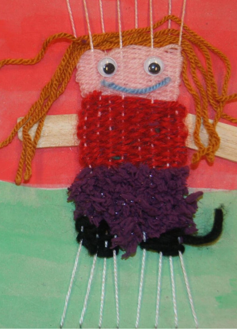 Vervolgens kan er met allerlei verschillende kleurtjes wol een popje worden geweven.